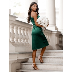 Satynowa sukienka z ozdobną różą KAIRI – butelkowa zieleń