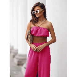Stylowy komplet top z szerokimi spodniami MATILDE – fuksjowy