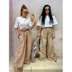 Szerokie spodnie z lampasami DANTE – beżowe