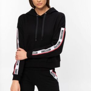 MOSCHINO Czarna bluza damska z kapturem i lampasami