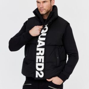 DSQUARED2 Czarny męski puchowy bezrękawnik z dużym logo, Rozmiar 52