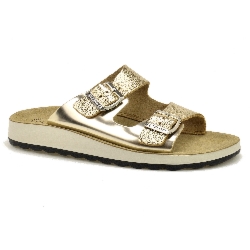 Złote skórzane klapki damskie FLY FLOT 77G64ZC