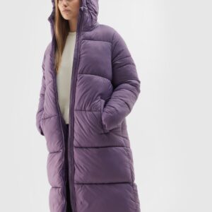 4F Długi płaszcz puchowy z syntetycznym wypełnieniem damski – fioletowy