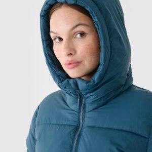 4F Długi płaszcz puchowy z syntetycznym wypełnieniem damski – turkusowy