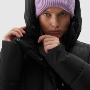4F Długi płaszcz puchowy z syntetycznym wypełnieniem damski – czarny
