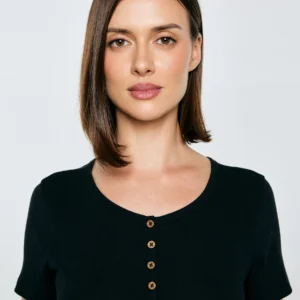 Koszulka damska w prążek z ozdobnymi guzikami czarna Werta 906
