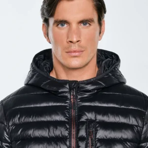 Kurtka męska pikowana z kapturem czarna Horp 906