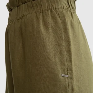 Spodnie damskie lniane z szeroką nogawką paperbag khaki Dorona 303