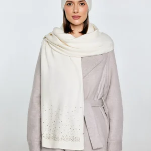 Szal damski bawełniany z kryształkami kremowy Cristaso 103
