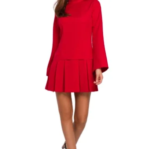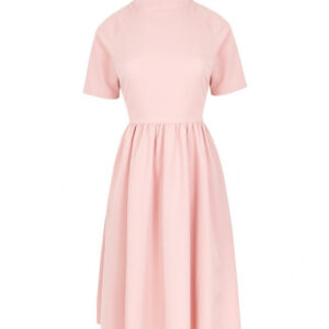 Elegancka rozkloszowana sukienka z wywiniętą stójką różowa