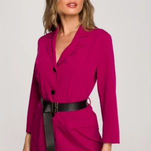Elegancka żakietowa sukienka marynarka z paskiem – śliwkowa