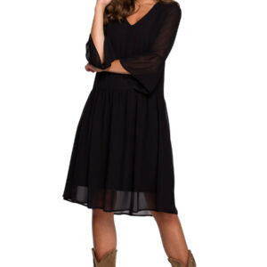 Sukienka wieczorowa szyfonowa z falbanami i dekoltem V czarna