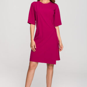Sukienka elegancka z podwójnym przodem z klamrą klasyczna fioletowa