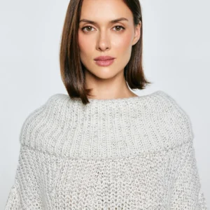 Sweter damski z obszernym golfem melanżowy biały Magdalena 100