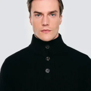 Sweter męski z golfem z motywem norweskim czarny Kristof 906