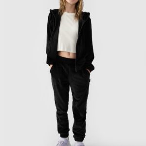 4F Bluza dresowa z weluru rozpinana z kapturem dziewczęca – czarna 122 (6-7 lat)