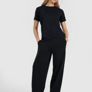 4F T-shirt z prążkowanej dzianiny z modalem damski – czarny