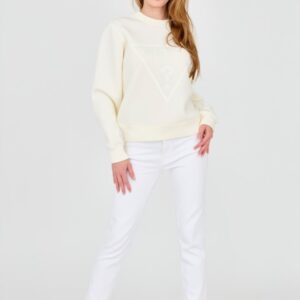 GUESS Biała bluza damska z literką g obszytą płatkami