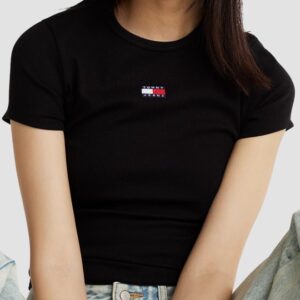 TOMMY JEANS Beżowy damski t-shirt z małym logo