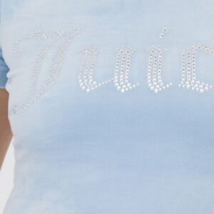 JUICY COUTURE Błękitny welurowy t-shirt damski z błyszczącym logo