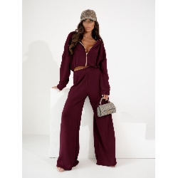 Komplet dzianinowy z szerokimi spodniami CELESTE – bordowy