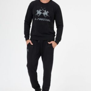 LA MARTINA Czarne męskie spodnie dresowe z szarym logo