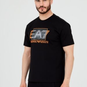 EA7 Męski czarny t-shirt z holograficznym logo