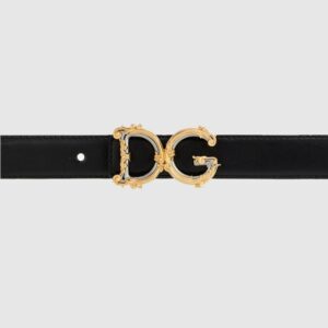 DOLCE & GABBANA Czarny pasek damski z barokową klamrą, Rozmiar 80