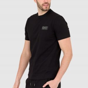 EA7 Czarny męski t-shirt z naszywką z logo
