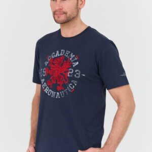 AERONAUTICA MILITARE Granatowy bawełniany męski t-shirt M.C