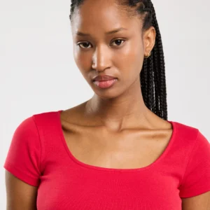 Koszulka damska slim z dekoltem caro czerwona Missa 603