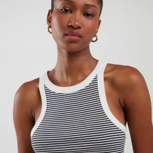 Koszulka damska na ramiączkach w prążek biało-granatowa Livia 403
