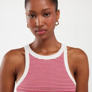 Koszulka damska na ramiączkach w prążek biało-czerwona Livia 603