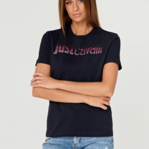 JUST CAVALLI Czarny damski t-shirt R LOGO CRYSTAL