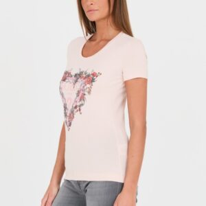 GUESS Różowy damski t-shirt bawełniany z logo