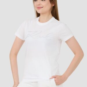 KARL LAGERFELD Biały damski t-shirt Rhinestone Logo