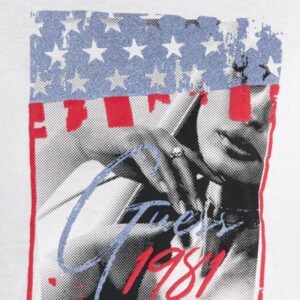 GUESS Biały t-shirt damski z nadrukiem i wiązaniem na plecach