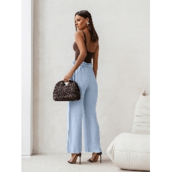 Stylowy komplet z szerokimi spodniami NOYA – błękitny