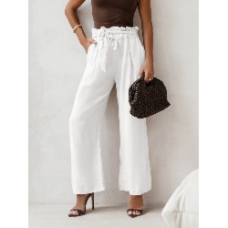 Stylowe lniane spodnie z paskiem ASKAR – białe