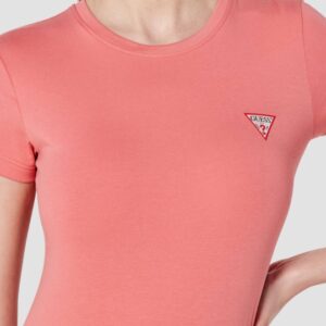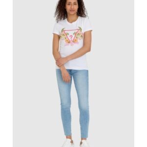 GUESS Biały t-shirt damski z logo z kwiatami i dżetami slim fit