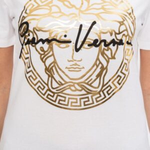 VERSACE Biały t-shirt damski ze złotą meduzą
