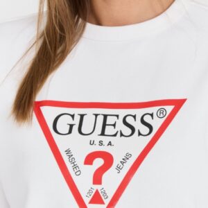 GUESS Biała damska bluza z dużym logo Original Fleece