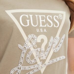 GUESS Lawendowy damski t-shirt Mini Triangle Tee