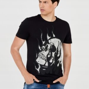 PHILIPP PLEIN Męski t-shirt z czaszką w płomieniach