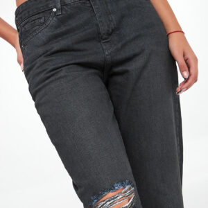 Jeansy damskie z szeroką nogawką z ozdobnymi dżetami czarne Atrea 929