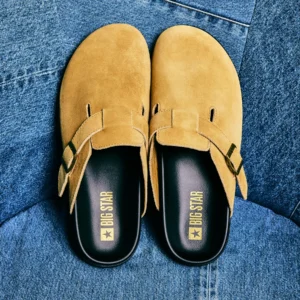 Klapki męskie ze skóry naturalnej zamszowej jasnobrązowe RR174140 802