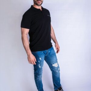 DOLCE & GABBANA Czarny t-shirt męski w serek z aplikacją z logo