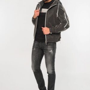 EMPORIO ARMANI Szara męska kurtka z tkaniny technicznej extra shiny glass