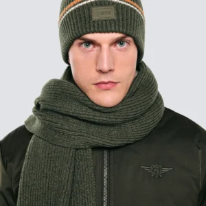 Czapka męska z kolorowym akcentem khaki Wandegor 303