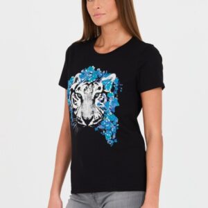 JUST CAVALLI Czarny damski t-shirt R Logo Tigre